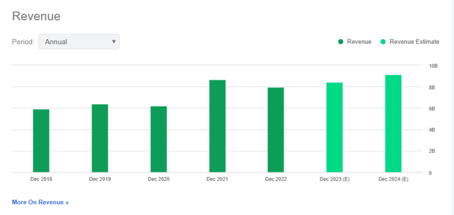- Excluding 2022, average revenue growth over the last three years has been less than 9%.