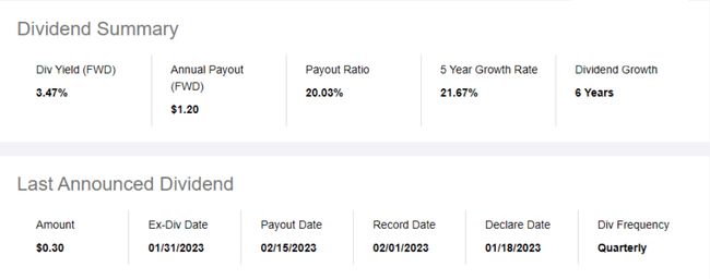 The dividend has been paid since 2017 and has been growing at a fairly rapid pace, which of course won't go on indefinitely, but at this point it's probably sustainable going forward.