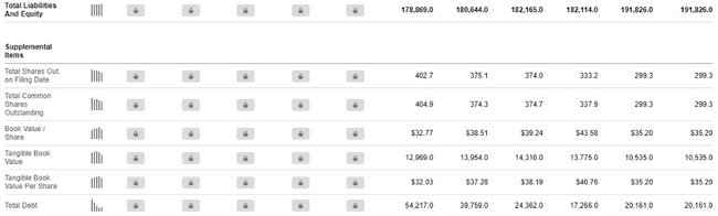 - Total debt is then some $20.1bn with total equity of $12.8bn, giving us a D/E ratio of 1.57, which isn't entirely bad, but it shows that the company is simply borrowing more than it has.