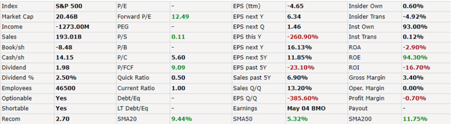 PEG is also not listed, likely due to negative earnings per share in the last 12 months. The company posted negative earnings per share in the past 12 months (-4.65 dollars per share) and is expected to return to earnings in the next year ($6.34 per share).