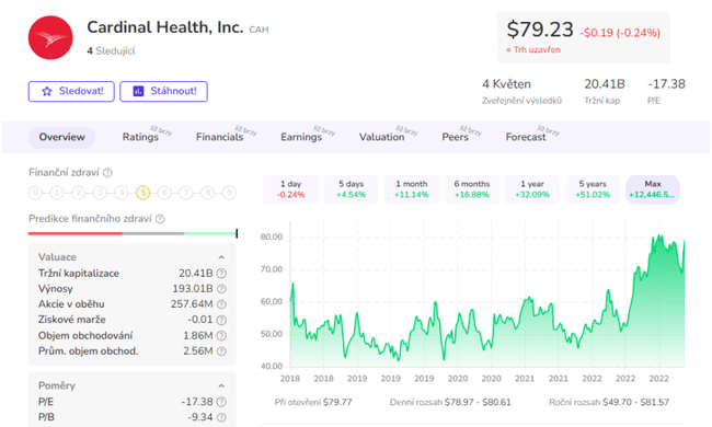 Cardinal Health $CAH is an American company that specializes in healthcare products and services. Its core businesses include distributing drugs and medical devices, providing information technology to the medical device and pharmaceutical industries, managing medical facilities, and providing clinical services. The company also manufactures and sells its own branded medical products such as surgical gloves, protective masks, and other medical supplies. Cardinal Health operates primarily in the U.S. market, but also has a global presence.